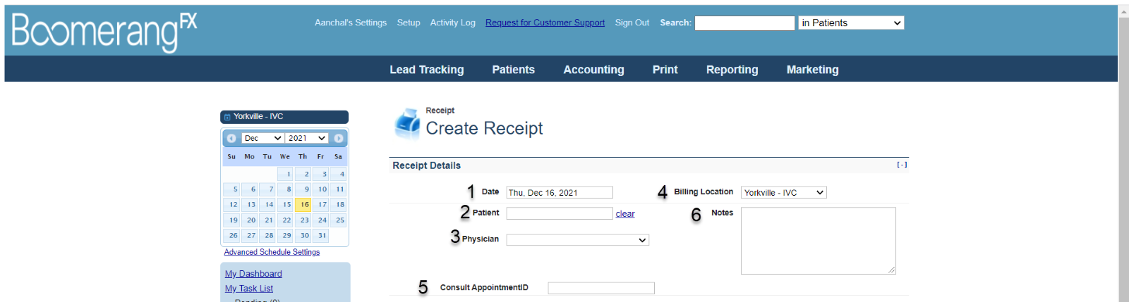 Once created, Receipts can be viewed in the patient’s information. To view the memo, select Patient List under Patients in the Top Menu Bar.