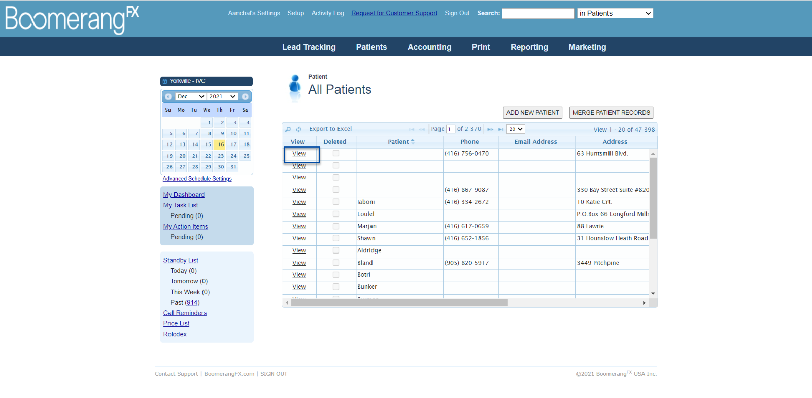 Then find and select the Patient in the Patient List to view Patient Details.