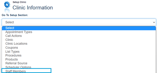 In Setup, select Staff Members from the Go To Setup Section Drop-down list.