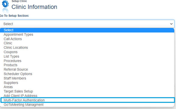 To enable a user’s MFA, click on Clinic Setup from the side menu.
