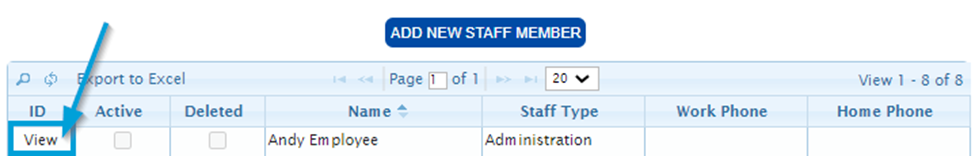 In the Staff Member List, find the User, and go to their Staff Member Details by pressing View.