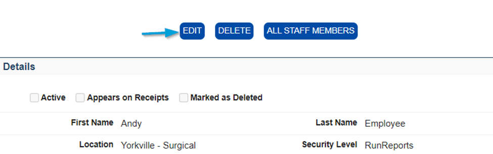 In Staff Member Details, press the Edit button.