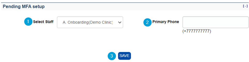 Select the user from the Select Staff Drop-down list (1). Only Active users without MFA will appear in this list.