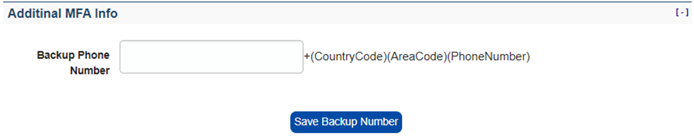 The Backup or Secondary Phone Number is a secondary number that can be selected to send the verification code to if the Primary Phone number is unavailable (i.e., Forgot phone at home, phone is damaged). Typically, this number will be that of the MFA Manager.