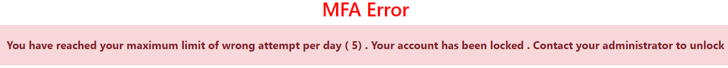 A user has 5 attempts to successfully login. After the fifth attempt, the user’s account is locked until the MFA Manager (typically your clinic manager) unlocks the account for them.