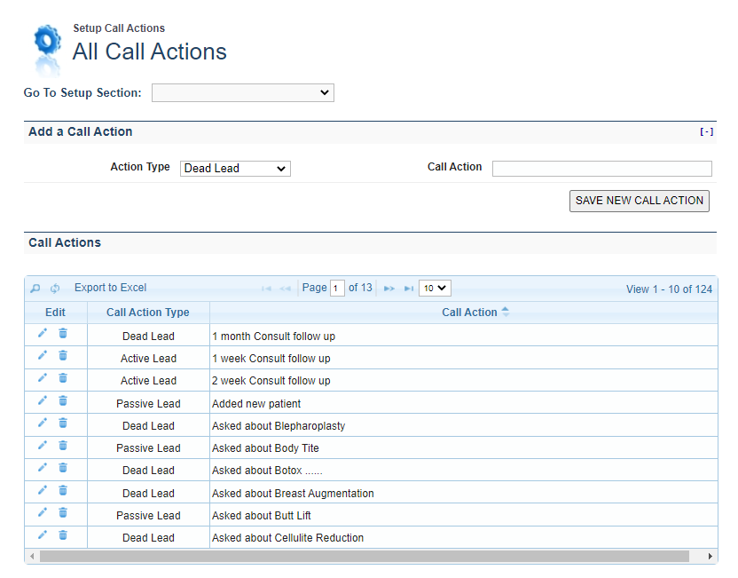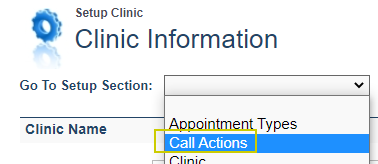 To access Call Actions, select Call Actions from the Go To Setup Section Drop-Down Menu.