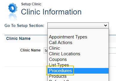 To access Scheduler Options, select Procedures from the Go To Setup Section Drop-Down Menu.
