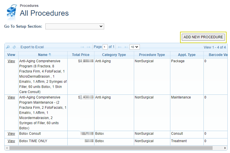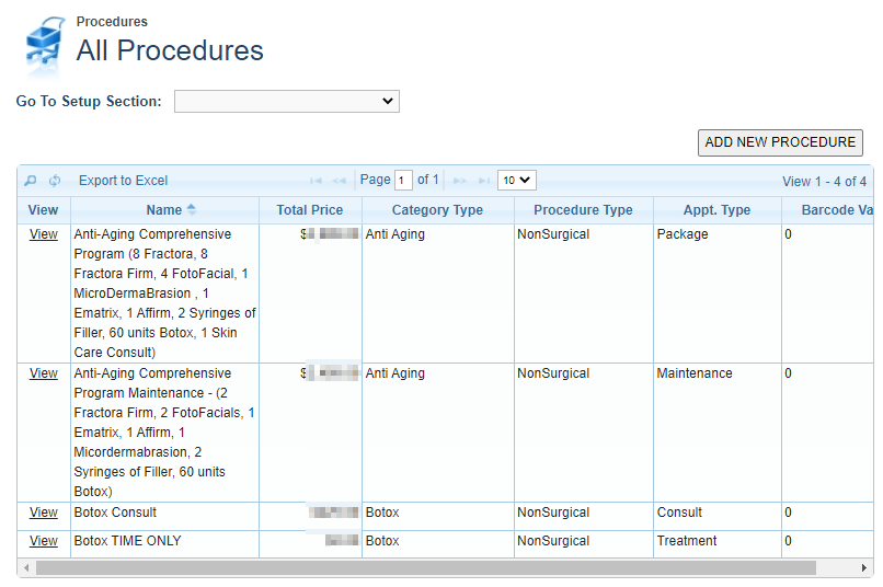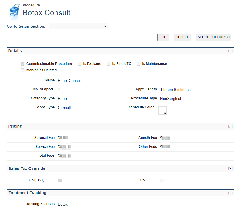 In this screen, a user can view, Edit or Delete a procedure, as well as return to the previous screen by clicking All Procedures.