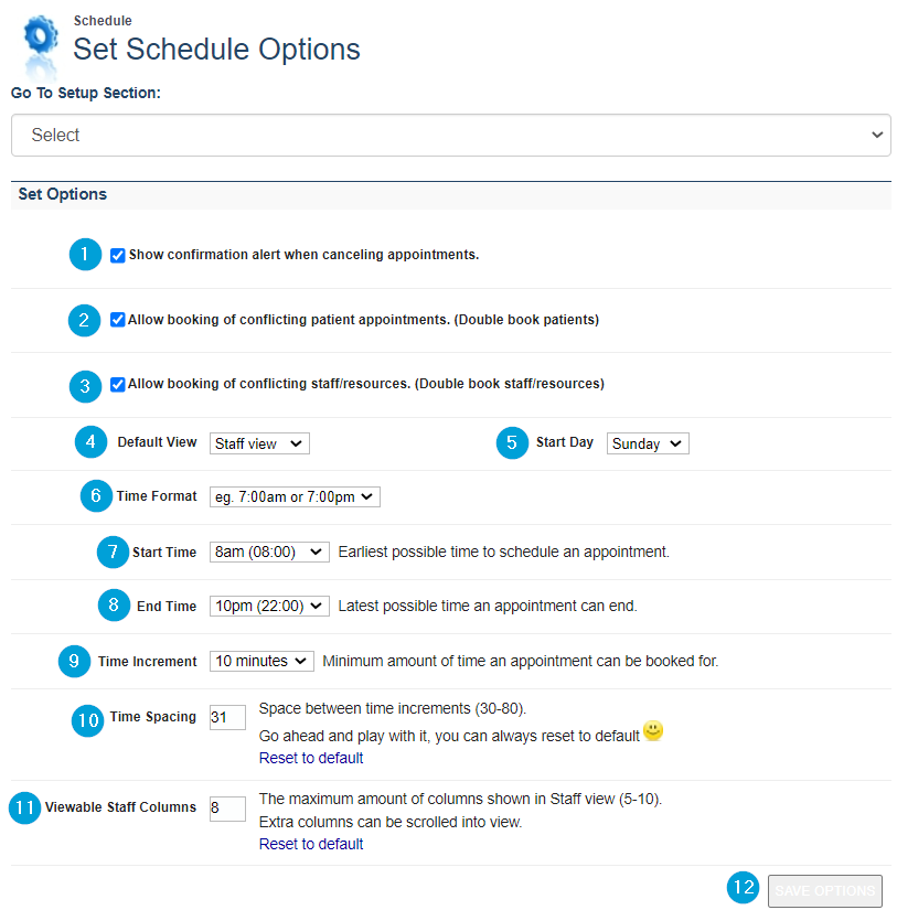 To access Scheduler Options, select Scheduler Options from the Go To Setup Section Drop-Down Menu.