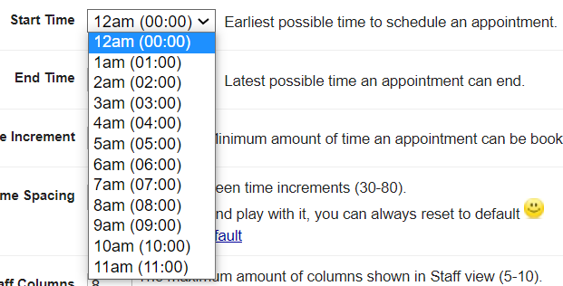 - Start in View – Clinics have the option to start the scheduler in Week View (default) or Staff View.