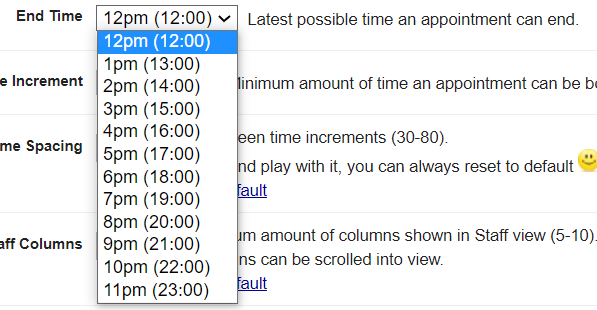 11- Viewable Staff Columns – This is the number of staff that can be seen on screen at one time (default 8).